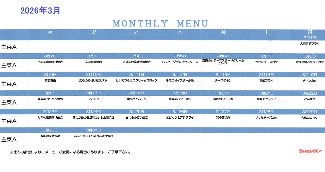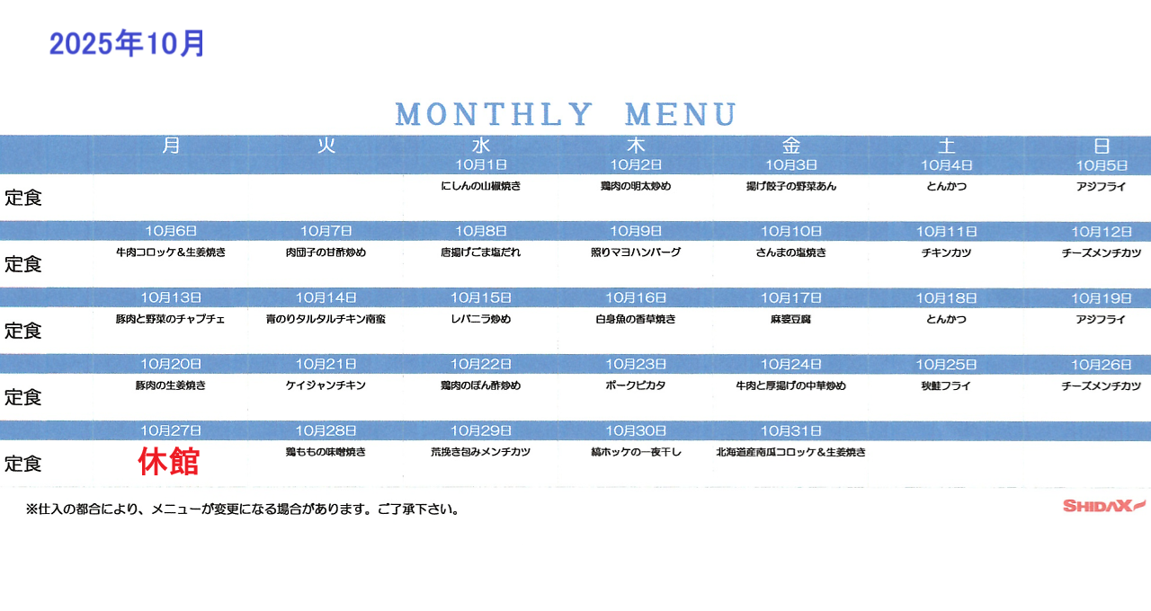 ★日替わり定食のメニューはこちら |